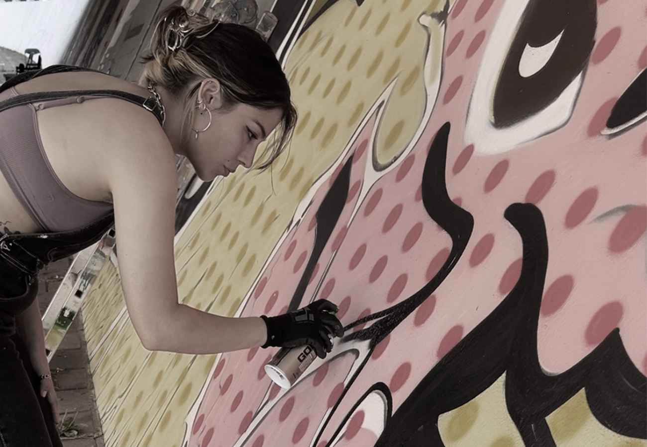 Mijn naam is Iza en ik ben een graffiti-artist en grafisch vormgver. Ik ben al een paar jaar actief in de omgeving Veenendaal en Ede samen met het Straatkapers graffiti collectief.